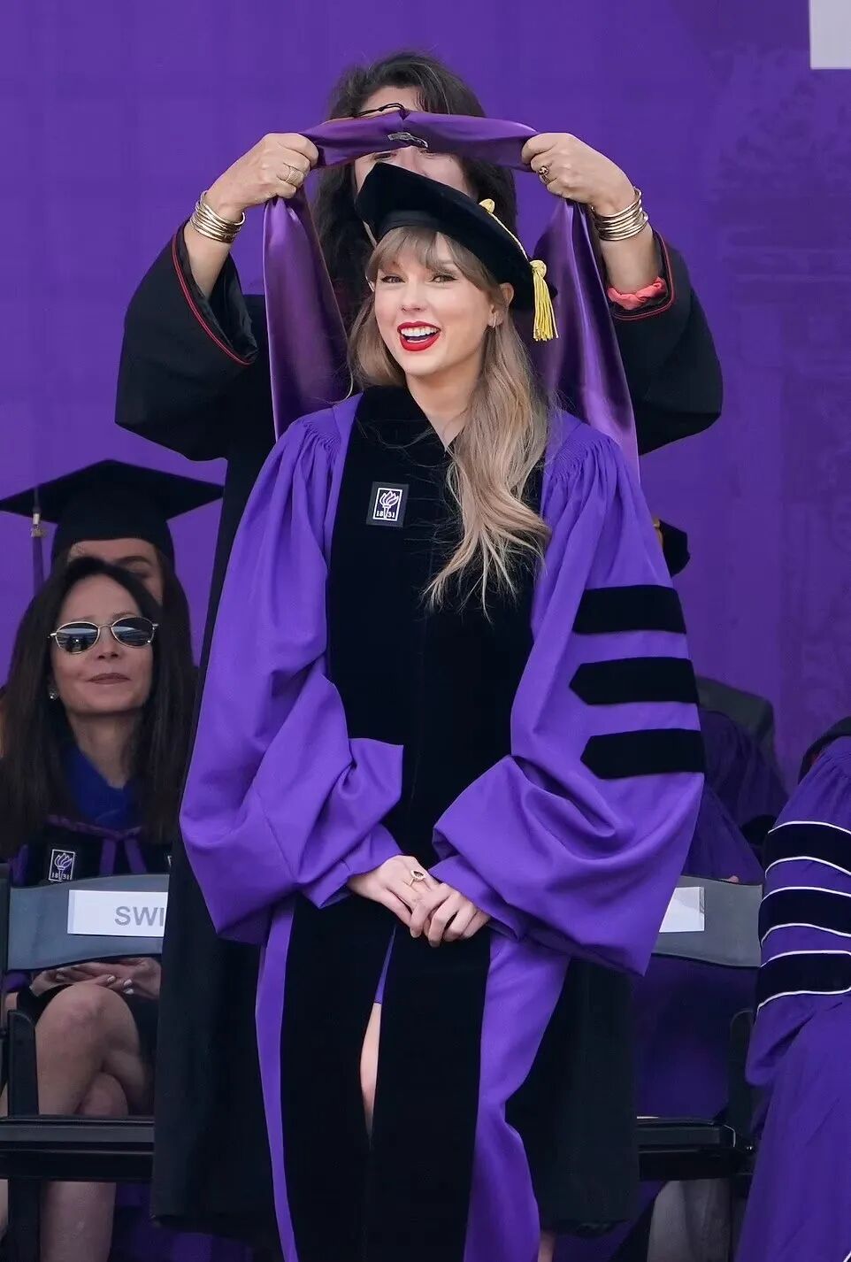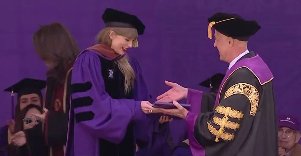 当天,32岁的霉霉身着紫色长袍接受了这一学位。