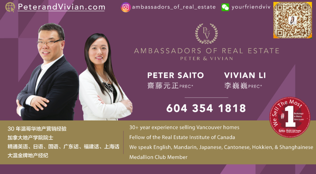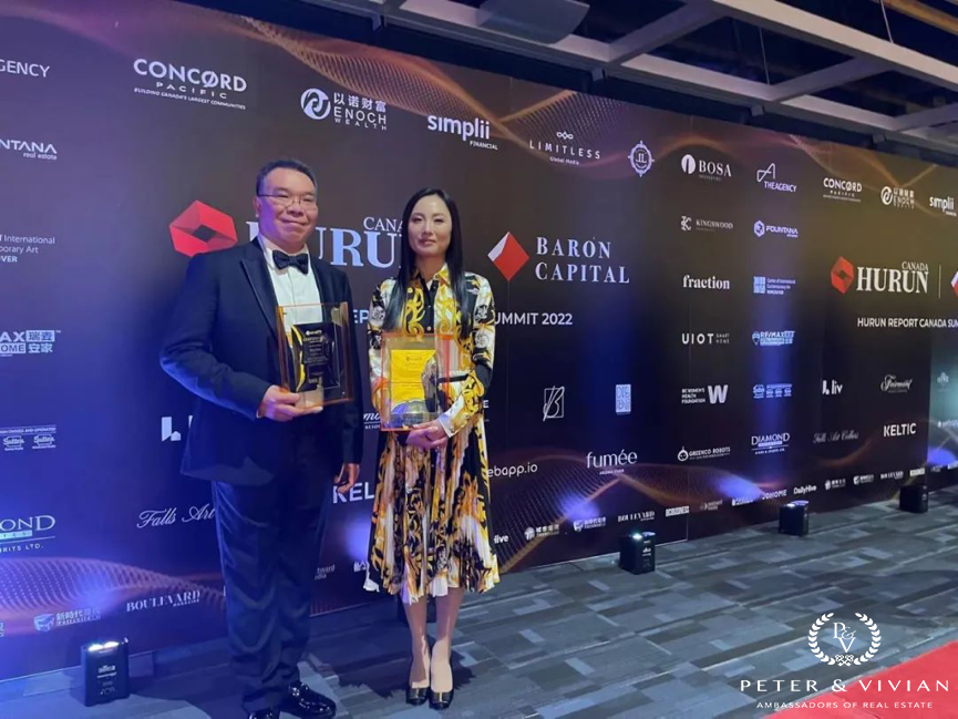 Peter 和 Vivian 屡次获得大温地产局颁发的“金牌经纪奖”,和加拿大本土最大地产公司 Sutton 颁发的最高奖——“百万金牌经纪大奖”。在他们搭档的11年间,房地产成交总额超过15亿加币,是温哥华豪宅市场妥妥的领头军。在刚刚结束的胡润百富北美峰会上,他们被评为“2021年加拿大最杰出的地产经纪”。