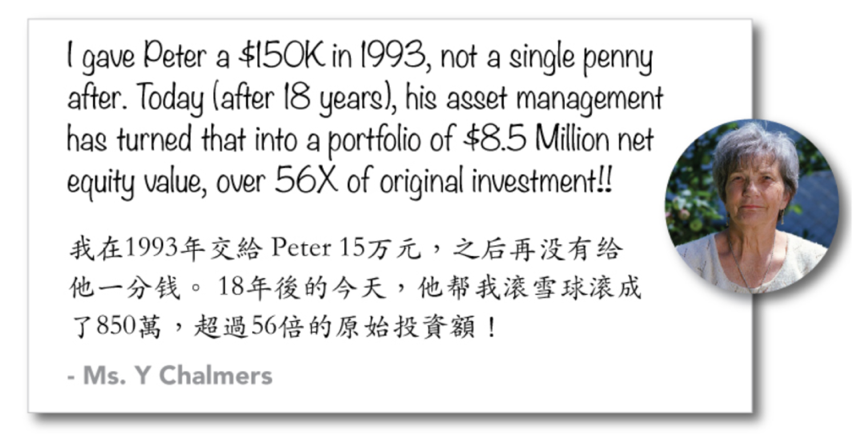 从业时间久了,很多客户也变成了朋友。其中有位从1993年就跟着 Peter 投资房地产的客户,经过18年的时间,资产从15万加元,滚雪球般涨到了850万加元。
