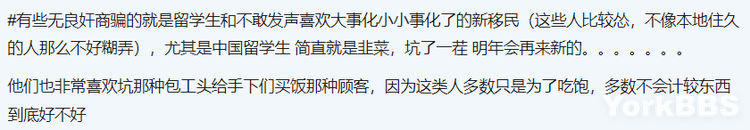 另外楼主还表示,有些无良奸商骗的就是留学生和不敢发声喜欢大事化小小事化了的新移民。尤其是中国留学生,简直就是韭菜,坑了一茬明年会再来新的……