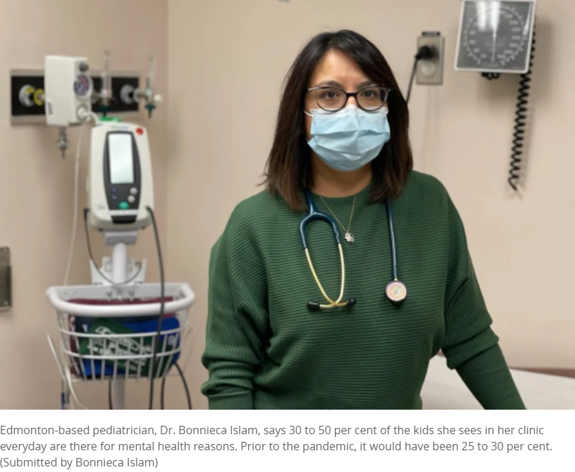 随着大流行的蔓延,埃德蒙顿的儿科医生 Bonnieca Islam 博士在 Stollery 儿童医院和她的门诊看到了心理健康危机的发展。她估计,她每天在诊所看到的孩子中有 30% 到 50% 正在寻求心理健康护理。