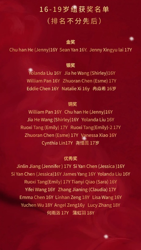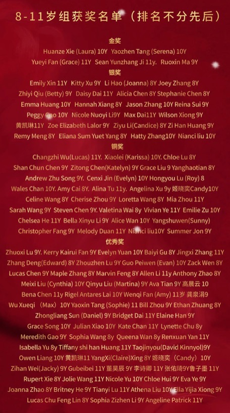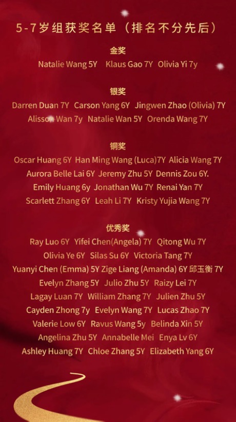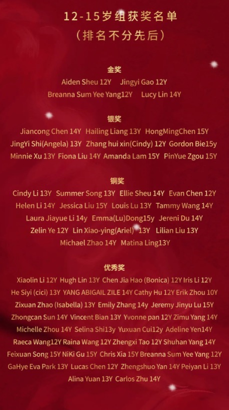 以下按照年龄组别公布获奖名单(名单无关作品分数,以组委会收到作品的先后顺序排列)