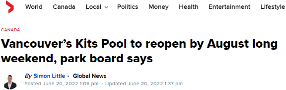 温哥华公园委员会于6月20日证实,委员会计划在 8 月的长周末之前开放 Kitsilano 室外游泳池。
