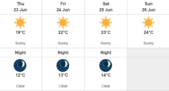 等到周六周日(6月25-26日),气温可能会达到28°C,而体感温度将飙升至33°C。