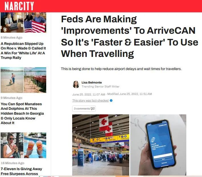 与此同时,据Narcity等媒体报道,加拿大联邦政府也已推出新政策,不断改进国际机场的延误情况。Narcity报道称,联邦政府正在对ArriveCAN进行改进。