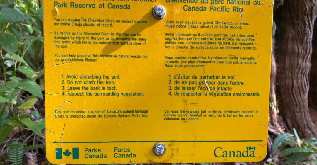 这颗大树位于BC省温哥华岛的西海岸,环太平洋国家公园保护区(Pacific Rim National Park Reserve)内。保护区内是户外爱好者的天堂,可以在岛屿群中划独木舟、浅水冲浪、走岩石岸边西部红雪松步道和探索神秘的洞窟等。