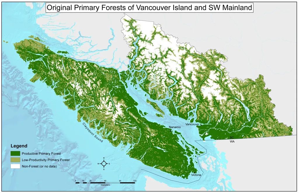 原始的温哥华岛和大温地区的古树分布