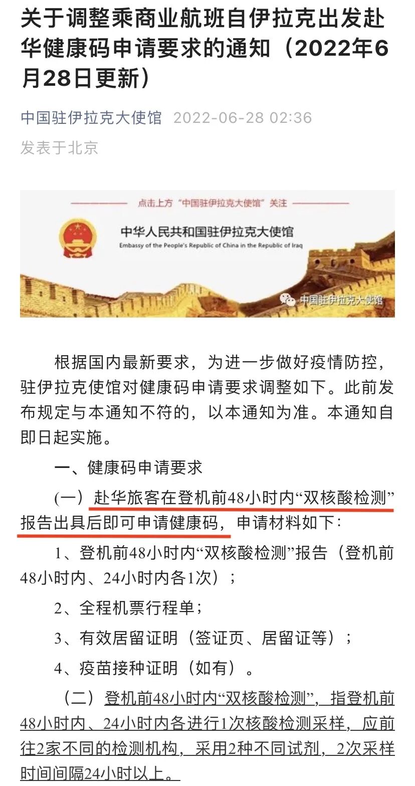 此外,6月28日,中国驻伊拉克大使馆也发布公告: