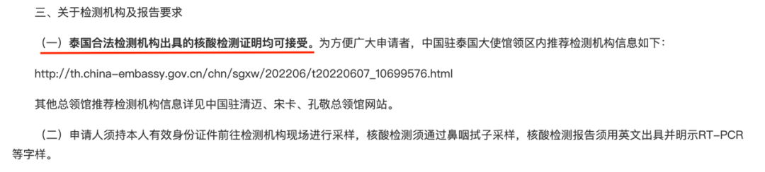 也就是说,想从泰国中转回国,必须先入境,然后去合法检测机构做核酸检测,才能申请健康码。在泰国境内只需要待满三天,就可以满足核酸检测的要求。