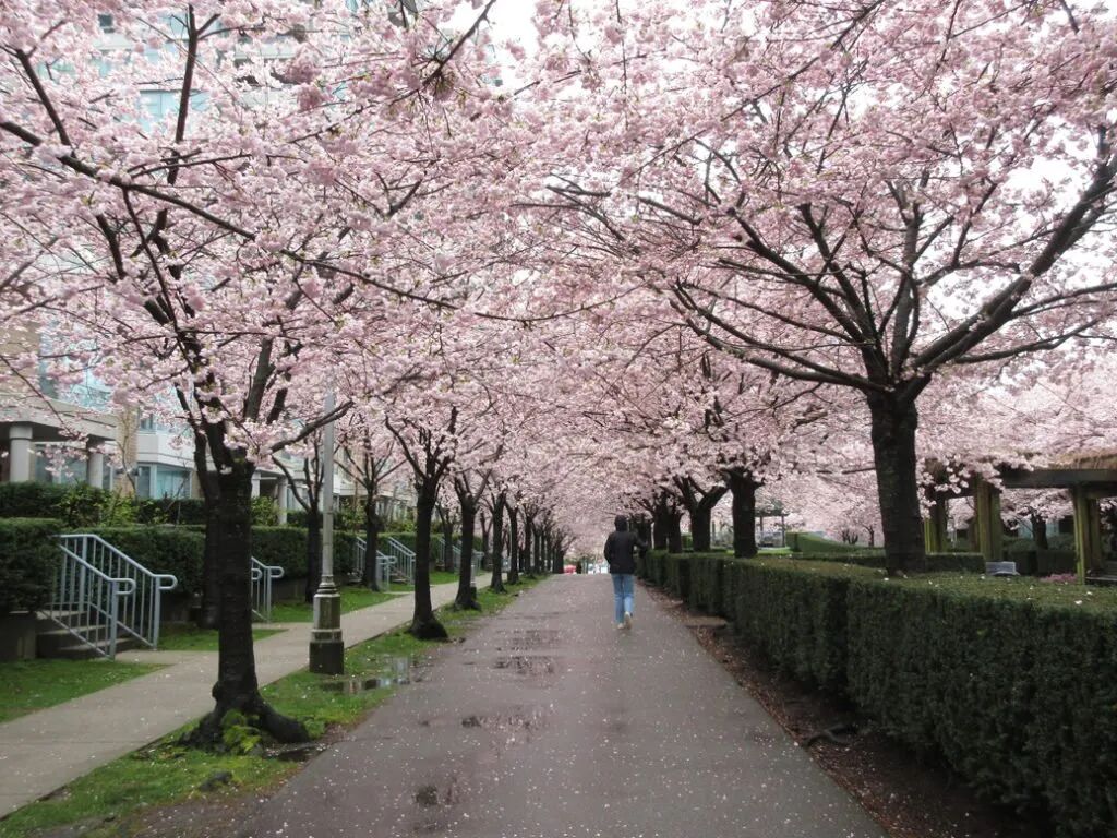 在春天,从东部到西岸跨过整个国家,走在许多城市都能看见盛放的樱花。早樱的白中透着一点娇嫩的粉。晚樱的粉色透着几分活力,形成了许多加拿大人心中的春天。