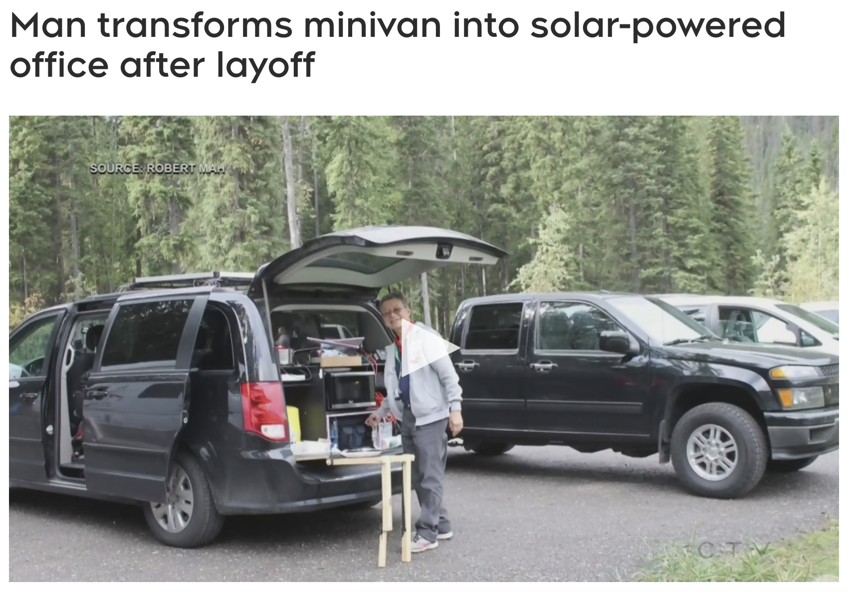 CTV news评价道:是呀?何不像马先生这般,无需再在安大略省操作技术设备,而是直接把车停在卑诗省的海边感性地工作呢?