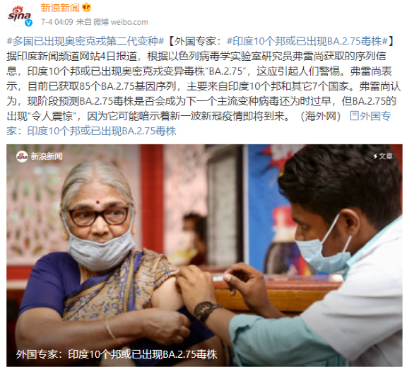 不止如此,一种传染性更强地理分布广的奥密克戎变种正悄然登陆加拿大、美国等多个国家。这种病毒名为BA.2.75,是奥密克戎的最新型变种,起初源于印度。自六月起,短短十数天内,就传遍了印度近10个邦。