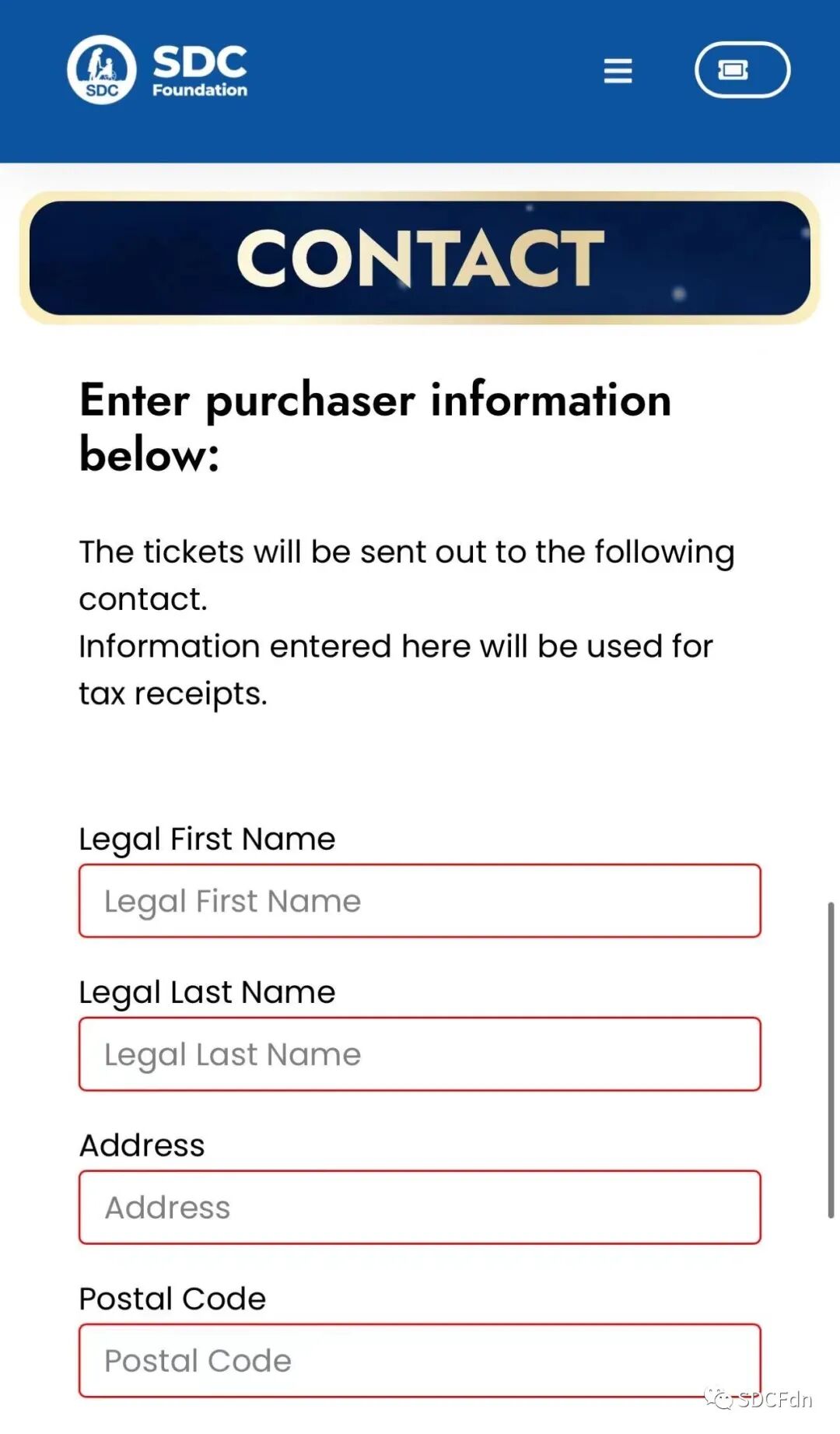 联系方式:选择完您希望购买的票种以及数量之后,会进到以下的画面:您需要填写您的个人讯息,用于为您开立加拿大的退税收据。填写完後购票就完成了!期待9月3日与您的相见~!