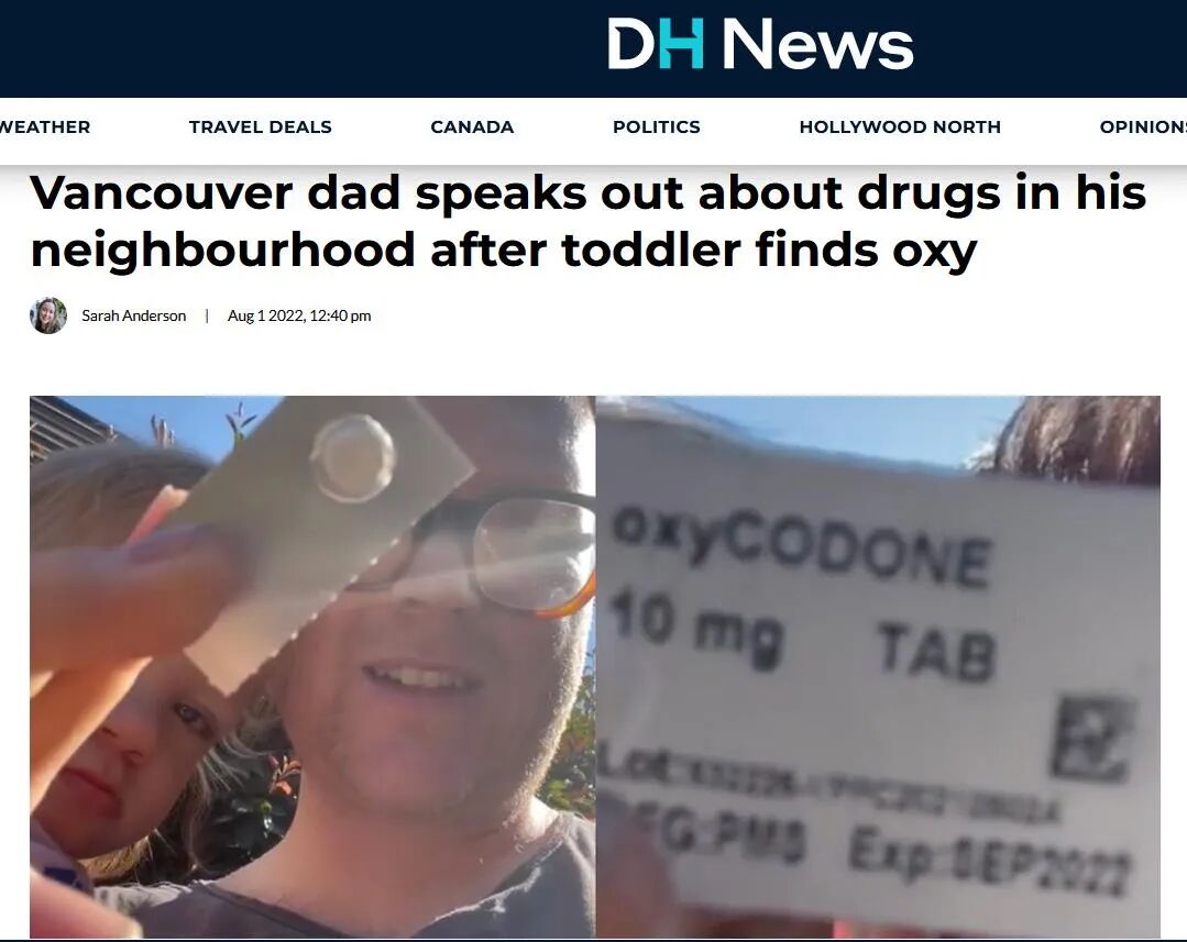 有住温哥华市东区的民众,带着一岁多的女儿去公园散步,没想到女儿随手就能捡到毒品,让他感到震惊。