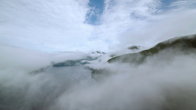 鲸鱼呼出的气息与森林同化,