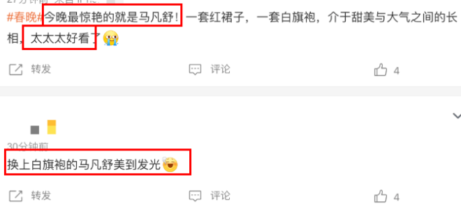 看到她后,网友们纷纷表示:今晚最惊艳的就是马凡舒,换上白旗袍的她美到发光。