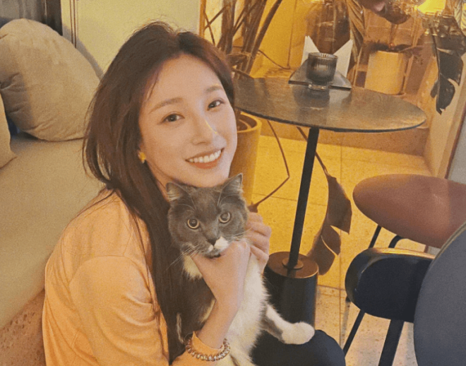 她还曾经有过长发造型,当时她扎着半丸子头,半披的头发还是卷的,化着粉嫩的妆容,不仔细看还真认不出来。