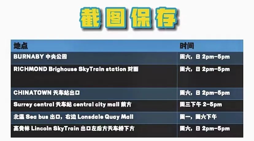 3,Surrey Central天车站Central City Mall前方,开放时间:周三下午两点到五点。