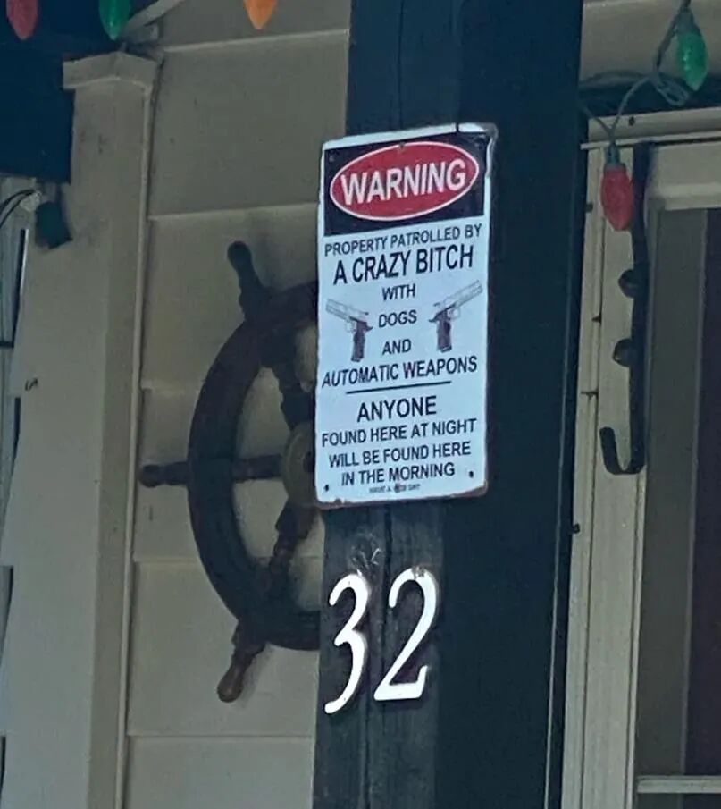 房子外面“受灾”情况也不小,前院种植了大麻植物。前廊上的一面带有大麻叶的旗帜会全天激活外部运动探测器灯,从而增加电费。其中一根横梁上钉有一个金属标志,指屋主有枪,威胁擅闯者。