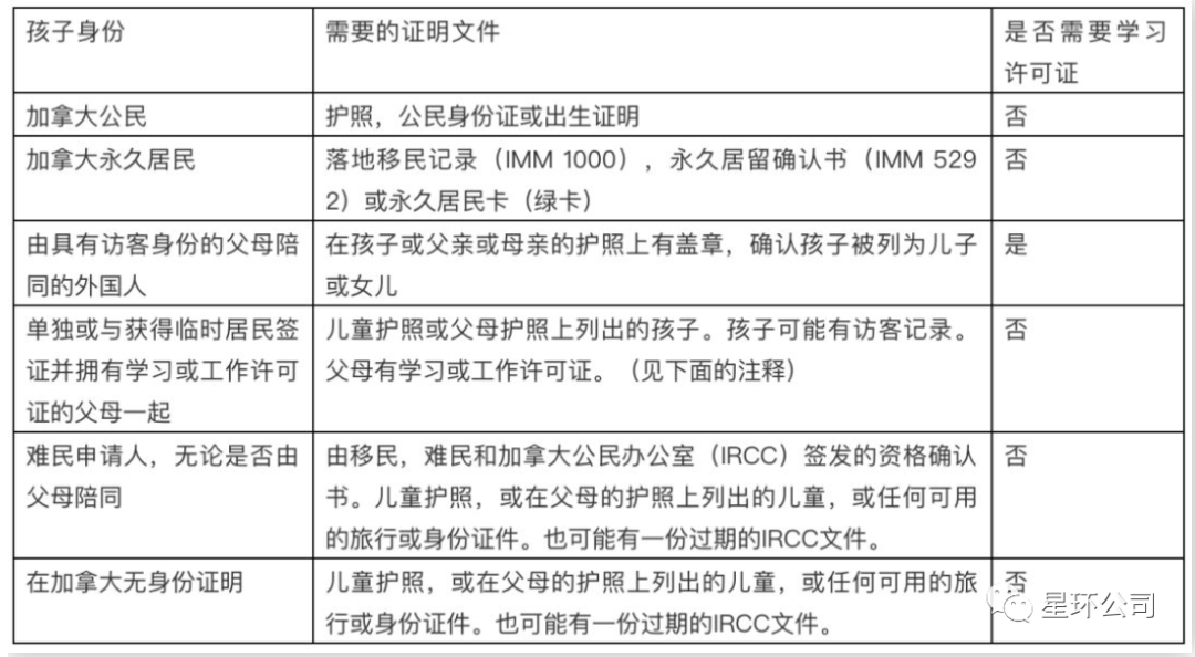 注:孩子进入加拿大时可能有访客记录或学习许可。如果孩子的护照上只有访客记录或加拿大入境印章,则该儿童有权在没有学习许可证的情况下学习。