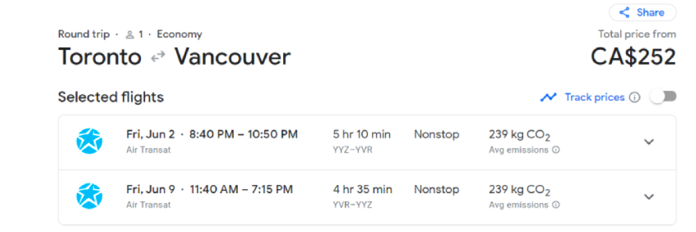 甚至在部分指定日期,Air Transat的多伦多往返温哥华 机票价格低至252加元。