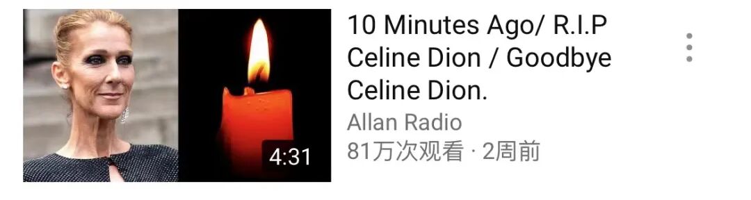 没去世!别继续传谣了!2022-08-24 |作者:一直在写的美国君 | 来源:这里是美国人物Loading...分享:#席琳·迪翁 、 “真的假的? 席琳·迪翁去世了?” 从昨天开始,“席琳·迪翁去世”的消息就开始在微博、朋友圈等社交媒体中传开,有网友甚至已经开始了对她的告别和缅怀…… 今天一大早,“席琳迪翁”又空降热搜↓ 席琳·迪翁Céline Dion相信大家都不会陌生吧: 1998年,她曾因演唱《泰坦尼克号》的经典主题曲《我心永恒》而成为国际超一线歌坛天后。 2013年,她还登上央视春晚的舞台,给中国观众也留下了深刻的印象。 作为这样一位世界级的传奇天后,按理说她如果真的去世的话,那必定会占据各大媒体头条位置的新闻吧。 然而,美国君以“席琳·迪翁去世”等关键词进行搜索,却并未在主流媒体、甚至是八卦小报检索到任何相关新闻。 那“席琳·迪翁去世”又是如何从天而降的呢? 社交媒体上流传最广的消息源是下面的这张油管视频的截图。封面图是由席琳·迪翁和蜡烛左右拼成,再配以“十分钟之前/R.I.P 席琳·迪翁/再见吧席琳·迪翁”的标题↓ 目前在油管上仍可查找这条视频,它发布于今年8月5日,观看量已超81万。 在这条长4分31秒的视频中介绍和总结了席琳·迪翁过往,包括音乐专辑、乐坛成就以及她近些年与疾病的抗争等等,但对于她去世的消息只字未提。 这里多说一句:在这个油管博主的主页上,可以看到多条没有来源的假消息,甚至连标题格式都类似: 例如,“10分钟前/悲伤的消息/我们会想念你/再见施瓦辛格”↓ 再比如,“5分钟前/悲伤的消息/他最终永远地离开了我们/再见舒马赫”↓ 所以,另一个问题来了,席琳·迪翁到底近况如何?为何总有这样的谣言传出呢? 1968年出生的席琳·迪翁,今年才54岁。 提及席琳·迪翁,除了她深沉而炽热《我心永恒》,绕不开还有她现实生活中、如《泰坦尼克号》中杰克与露丝一般的爱情。 席琳·迪翁的爱人名叫雷尼·安杰利,他比她年长26岁,还是她最敬重的经纪人、伯乐和引路人。 1999年,雷尼·安杰利不幸确诊喉癌,事业正如日中天的席琳·迪翁毅然决定暂别歌坛,回家一心一意照顾病中的丈夫。 虽然已经很用力地与病魔斗争了,但2016年雷尼·安杰利还是走了。 丈夫走后,席琳·迪翁变得憔悴了很多,人也瘦了几圈。 再之后,每次席琳·迪翁在公开场合亮相,都会以瘦到“皮包骨”的身形出现在媒体的镜头里: 还有媒体称其“骷髅一样的身形”吓坏粉丝。 只不过,对于这些声音,席琳·迪翁似乎并不在意,只留下一句“别管我”。 然而,天后的不在意似乎并没有阻止了谣言。在她暴瘦后的这些年里,几乎每隔一段时间,就会传出一次关于席琳·迪翁的谣言: “席琳·迪翁病情恶化几乎瘫痪”,“席琳·迪翁去世”的消息也不是第一次出现了。 这些年席琳·迪翁一直都在与肌肉痉挛的病痛作斗争,还因此多次推迟自己的巡演。 去年10月,她发文宣布推迟或取消自己在拉斯维加斯名胜世界举办的多场演唱会。席琳·迪翁对此表示心碎,“在过去的8个月时间里,自己和团队所有的努力都在此了,此刻的悲伤无以言表。” 声明中写道,“席琳·迪翁因为严重且持续性的肌肉痉挛,使得她无法登台表演,医疗团队将会继续对她进行评估和治疗,但她现在的身体情况已经不允许她参加演出的排练了。” 今年4月,席琳·迪翁又在ins上宣布自己2022年的欧洲巡演要推迟了2023年了。她还专门发布视频向粉丝们解释巡演推迟的原因,“因为我的健康问题,使我不得不推迟演出。我现在好一点了…但仍有肌肉痉挛的症状。我必须要在舞台上保持最佳状态。说真的我也迫不及待想要登台,但目前的恢复还不够…我正在尽最大努力恢复状态,给大家一个100%的舞台,因为你们值得”。 视频中的席琳·迪翁数度哽咽,粉丝们也在评论区为她加油,希望她能早日完全康复。 不久前,席琳·迪翁还分享了自己设计并装饰的小象雕塑,还给它取名Namaste,而这次展览是为了提高人们对大象保护的认识和支持。 讲真,现在的席琳·迪翁虽然身体状况不如从前,但她的心态始终很好,真不知道为了流量拿这么严肃的事一次次造谣的人,良心真的不会痛吗?! 最后,希望席琳·迪翁能早日站回她一直想念的舞台。 阅读 未经允许不得转载:加拿大乐活网 »没去世!别继续传谣了!分享:
