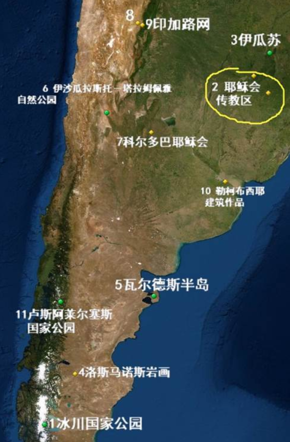 截止目前为止,阿根廷共有11个地区被联合国教科文组织为列为世界遗产。