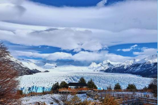 莫雷诺冰川像是演唱会舞台。冰川的蓝、湖水的绿,再配上栈道的黄,现场的色彩感极佳。遇到冬季刚下过一场雪,随处是美景。走完该游览栈道需要3小时。游览栈道分为红、绿、黄、蓝4条路径,标记在栈道围栏上。黄色路径可以俯瞰整座冰川,时间允许的话,应该把红、蓝都走完。红色可以近距离观察冰川,蓝色看得更宏观。