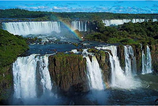 巴西和阿根廷两国共有。伊瓜苏国家公园是世界上最大和最壮观的瀑布群之一,整个瀑布群宽约2700米。这里是许多稀有濒危动植物物种的栖息地,其中包括大水獭和巨食蚁兽。瀑布产生的雾气滋润着这里的各种植物,使得它们能够茂密地生长。