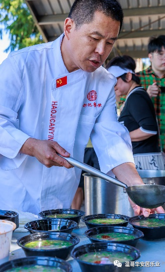 河南老乡们自觉有序地排队用餐,彰显出河南人的极高素质。市长和市议员们也受邀和大家一起品尝了地道的河南家乡菜,并连连夸赞味道好,赞不绝口。
