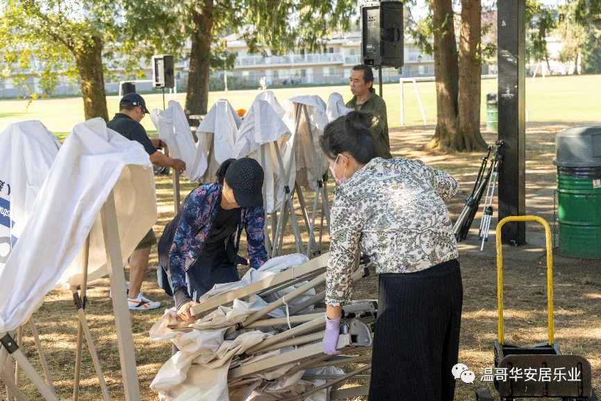 总会和总商会秘书处为本次活动的顺利举办,提前做了大量的辛苦筹备工作。清早8点不到,老乡毕俊峰就自告奋勇到烧烤现场占座位。接着,由会长张智勇带队,秘书处杨林、蓉歌、David夫妇、刘学军夫妇、Victoria、同同、苏美珠、Abby Wang等成员和义工全部到达会场,开始紧张的布置准备工作,将预先准备的帐篷、桌椅、餐具饮料等搬运到现场。活动特聘的音响师付长军夫妇,也开始紧锣密鼓地安装专业的音响设备。