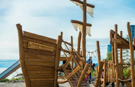 园区临海有沙滩、儿童游乐场、沙地乐园、野餐草地和专用自行车道。如果是大晴天,不妨来这里放放风!