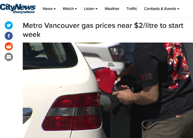对于大温的朋友来说,这一周的油价实在不怎么理想。今天出勤的朋友可能已经注意到了,路边部分加油站的价格已经快要接近每升2加元了!