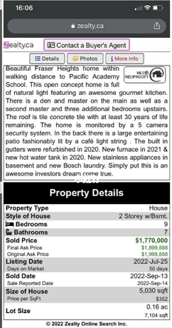 从上图可以看出来,买家其实早在2022年7月25就挂牌了,当时的挂牌价是119.98万,随着加拿大央行的加息,报价调低到189.98万,等到2022年9月加拿大央行又一次加息,这位投资者有可能触发利率,心态完全破防,最终以177万的价格斩仓离场。