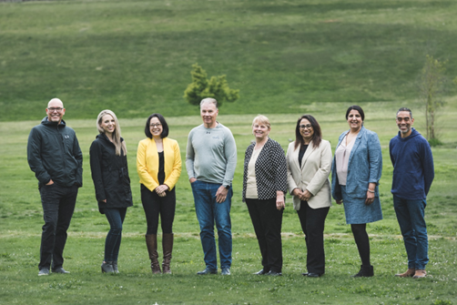 (左起)卡莫里( Maury Kask)- 商界精英;贝珥德( Erica Beard)- 现任学务委员、竞选连任; Masako Gooch- 社区倡导者;哈维 (George Harvie)- 现任市长、竞选连任; 温莎( Val Windsor)- 现任三角洲教育局主席、三界学务委员、竞选连任;道拉(Nimmi Daula)- Sher-E-Punjab电台资深主持人;Ammen Dhillon 博士 – 注册临床顾问和研究科学家;建筑师和前三角洲地区家长咨询委员会(PAC) 主席梅高(Joe Muego)。