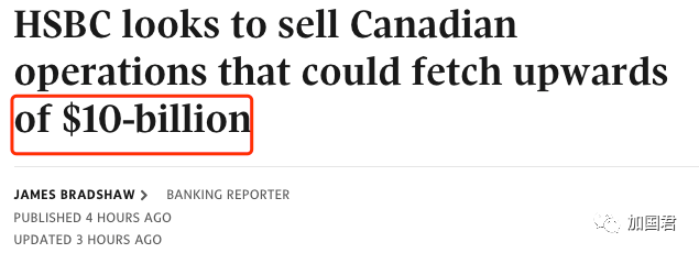 汇丰控股有限公司10月4日周二证实,它正在考虑出售其加拿大分部。据称,这是一项可能获得超过 100 亿加元的交易,加拿大6大银行均有兴趣。