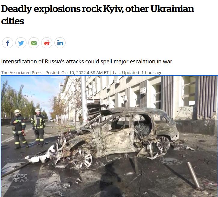 综合加拿大广播电视公司(CBC)及多家媒体报道,这次攻击,是在10月8日当天连接俄国与克里米亚的克里米亚大桥爆炸受损,俄罗斯总统普京指控这是乌克兰特工主谋的“恐怖攻击”之后,俄军对乌克兰进行的大规模反击,也标志着几个月来最大和最广泛的袭击。