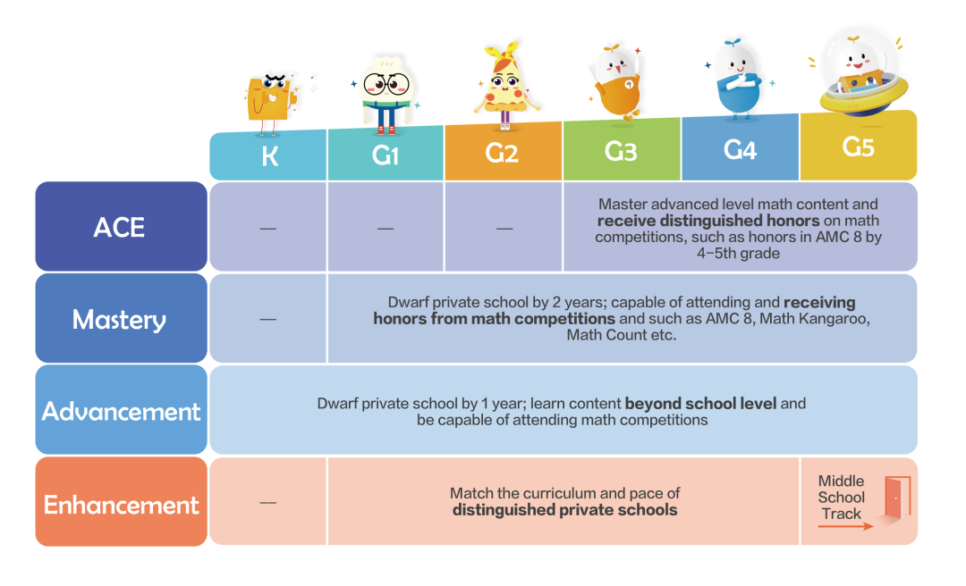 学而思美国分校Think Academy强大的教研团队深耕美国教育体系多年,配合学而思19年数学教育经验积累,研发了最适合在美就读的小朋友的“七大模块”和“12级能力体系”。