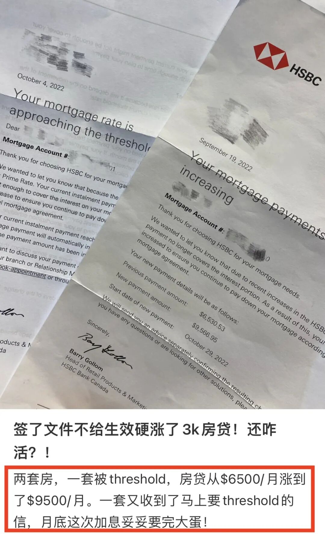 没想到这几天还是收到了通知:他的一套房子已经达到了触发利率,月供要涨到$9500!另一套也马上要达到触发利率,让他做好准备。