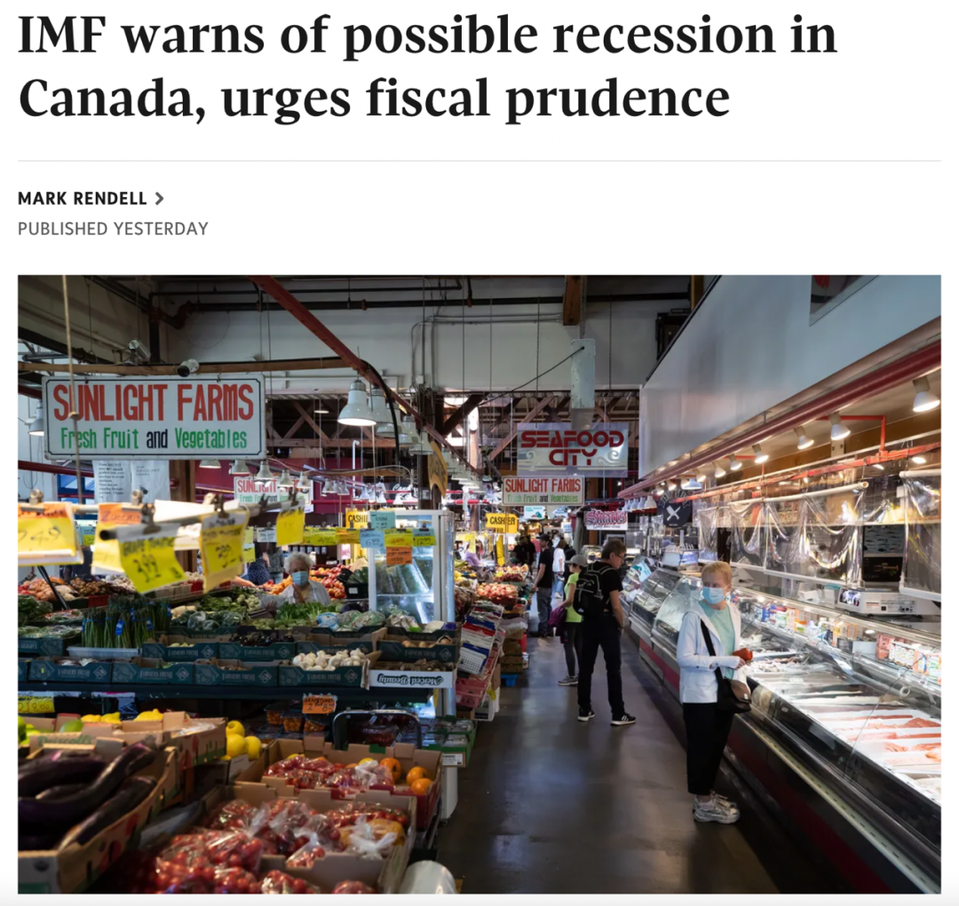 国际货币基金组织在昨天(10月12日)发布的一份报告中指出:加拿大经济将“进一步大幅降温”,并建议联邦和省政府在加拿大濒临衰退边缘时不要花费意外收入。