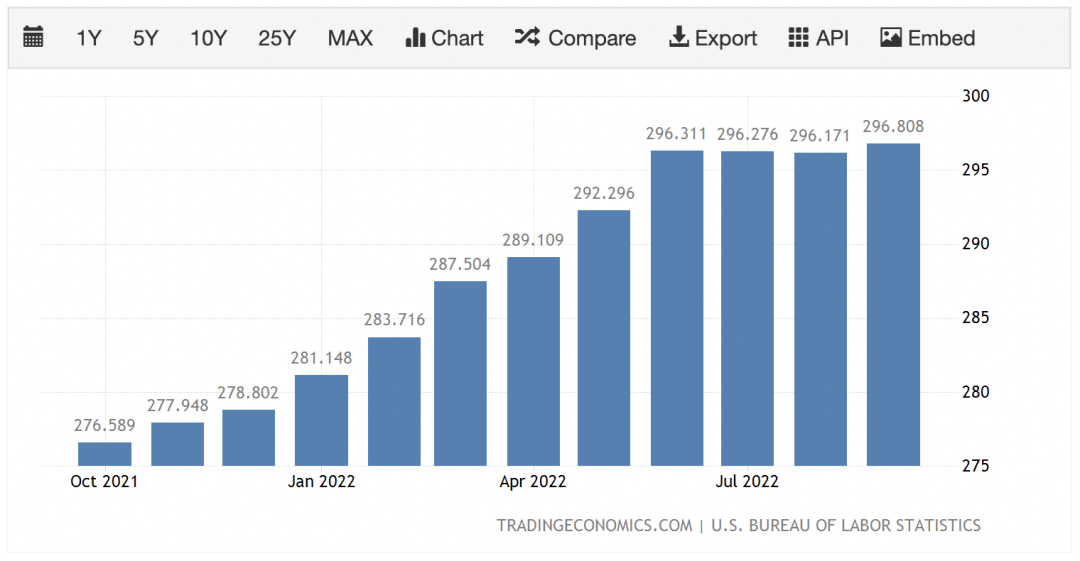 美国劳工部正式披露了9月份的消费者价格指数(CPI),同比上涨8.2%,高于市场预期的8.1%;环比上涨0.4%,是市场预期0.2%的两倍。