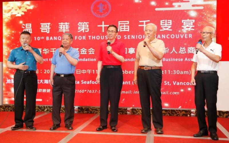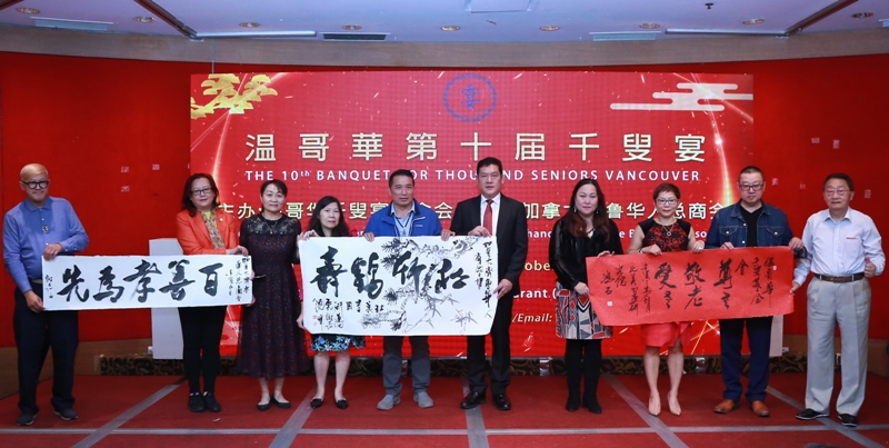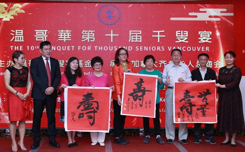 【加拿大乐活网Lahoo.ca讯】本网讯)第十届温哥华千叟宴10月7日中午假座温哥华华埠富大海鲜酒家盛大举行。10月1日是加拿大的长者日,10月4日是中华民族的重阳节,在这敬老的佳期,八百位老人兴高采烈欢聚一堂,加拿大三级政府代表联邦枢密院院士黄陈小萍、BC省议员李耀华、姚君宪,列治文市议员区泽光、本那比市议员王白进等也赶来为老人祝福。