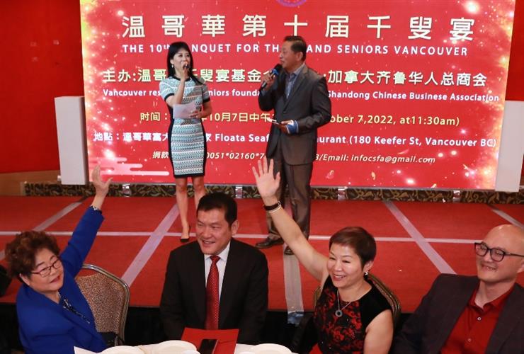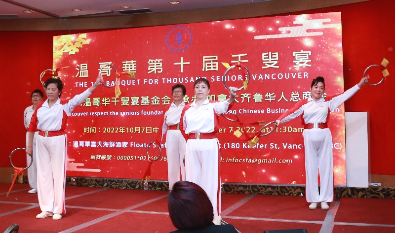 第十届温哥华千叟宴由温哥华千叟宴慈善基金会主办,加拿大齐鲁华人总商会承办,本地社团和众多善心人士共襄善举。本次活动邀请千位70岁以上长者,除华裔外还包括部分其他族裔长者,活动不仅为长者提供免费午餐,现场还有精彩的文艺表演及每人一份精美礼品。由于新冠疫情还未完全结束,千叟宴现场邀请八百位长者堂食,并向另外二百位长者致送精美礼品。