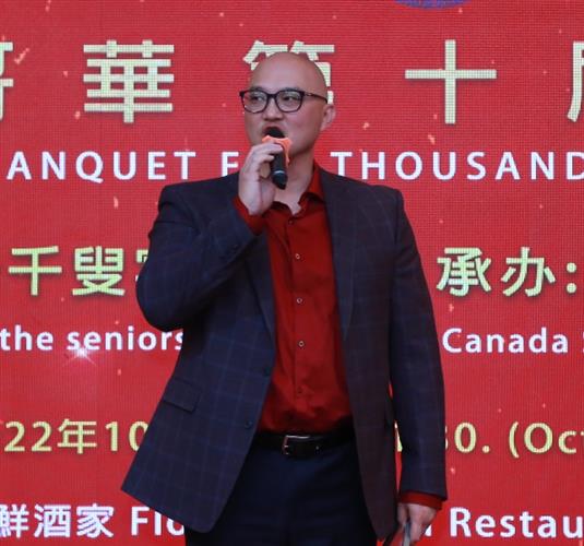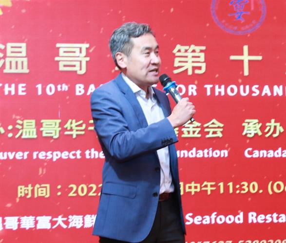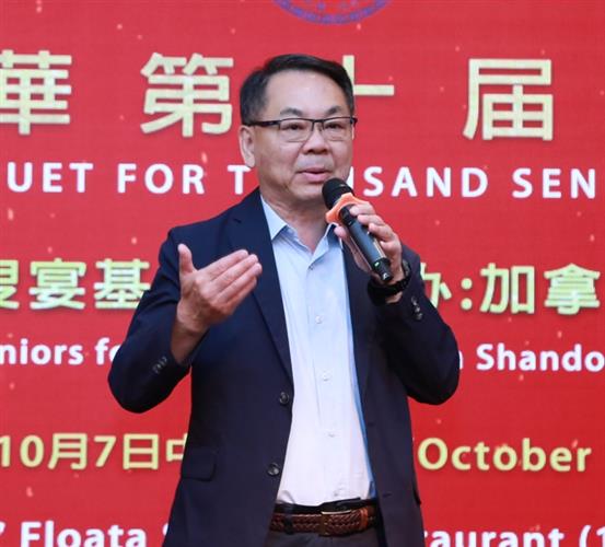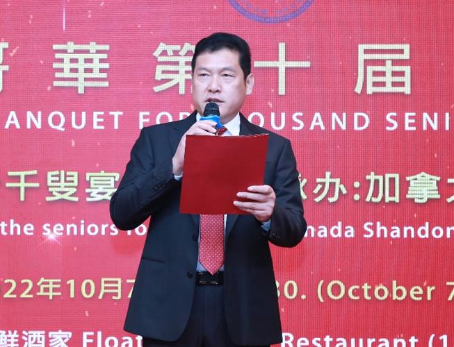 第十届温哥华千叟宴执行主席刘朝方首先致词,温哥华千叟宴受到大温地区长者的欢迎和赞扬,第十届千叟宴由齐鲁华人总商会承办,我们深感荣幸。山东大地是儒家文化发祥地,敬老事亲,崇尚礼仪是千百年来齐鲁文化之精髓。孝道,美德之首,立身之本,齐家之宝,传承中华美德,弘扬孝道文化,是我们共同的责任!因此,我们不仅今天在这里举办千叟宴,我们还要在更大的范围推广中华民族爱老敬老的传统美德。