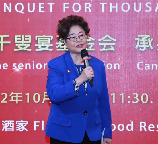 远在纽约的温哥华千叟宴荣誉主席、千叟宴慈善基金会主席洪绮璟今天专程赶来参加千叟宴,每一届的千叟宴洪绮璟都是主要捐款人,十年来从未间断。她深情地说,爱老敬老不仅是齐鲁文化、中华文化的传统美德,其实也是加拿大和全人类的美德,我会一直为千叟宴捐款,也感谢齐鲁华人总商会和所有为第十届温哥华千叟宴作出捐赠的善长们表示衷心的感谢。