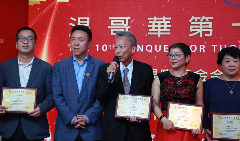 千叟宴组委会向黄培、薛晓梅、曹卫红、王景、Helen Wang、杜强、郑燕、王岩、庄永编、郭红、寰利金融、华人联合总会、巨星舞台艺术学院、四川同乡总会、安徽同乡总会、温州同乡总会、和合文化研究会颁发共同主席证书。
