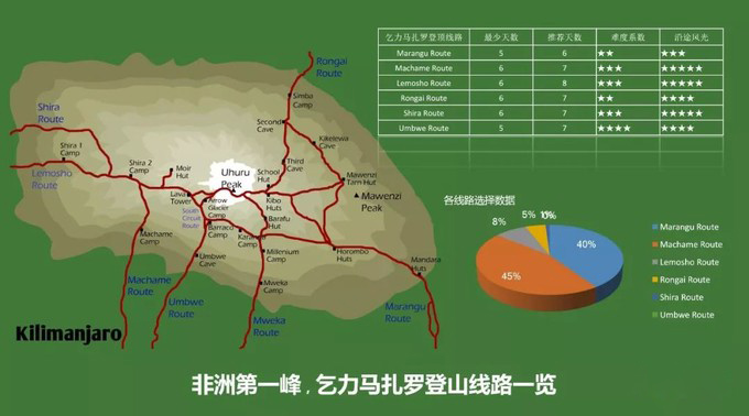 这条路线的难度比威士忌线略低,属于休闲型路线,进山的点在肯尼亚,所以人也比较少,风景虽然不如威士忌线丰富多彩,却胜在了原生态。