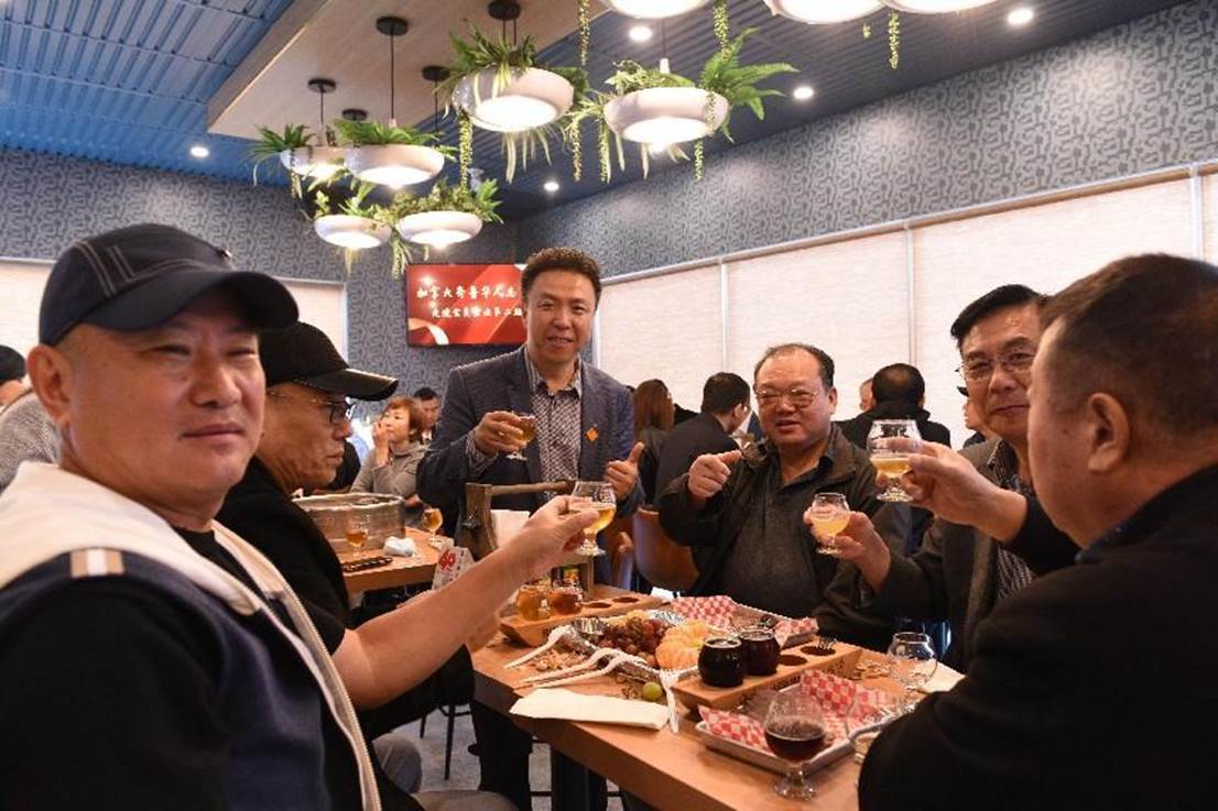 听到刘朝方理事长对商会的目标和工作计划后, 马东兵先生也详细介绍了啤酒厂的发展现状和远景,令大家对罗塞尔啤酒又有了更深刻的认识。马东兵先生经过考虑后,决定给商会捐赠50万加元的啤酒厂股份,用以支持商会的发展。他的善举赢得了在场所有人的热烈掌声。刘理事长同马董事长当场握手、共同举杯,让摄影师留下了这珍贵的瞬间。