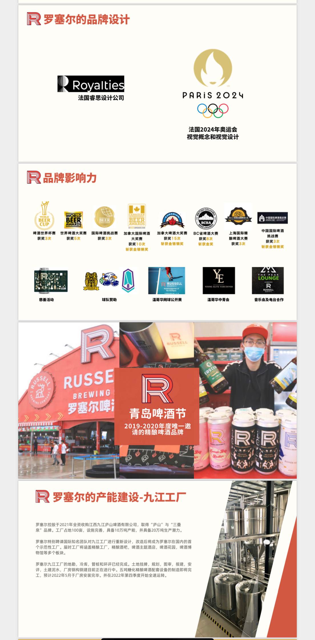 据马东兵先生介绍,罗塞尔啤酒不但在加拿大销售(多个LIQUOR STORE 都可以买到,网上也可以直接购货,公司网址:Russellbeer.com),而且还出口到日本、新加坡和中国以及中国台湾地区。 他还提到2021年全资收购了江西九江庐山啤酒有限公司,具备10万吨产能,正在安装调试设备,不日将投产,以满足中国市场的需求。