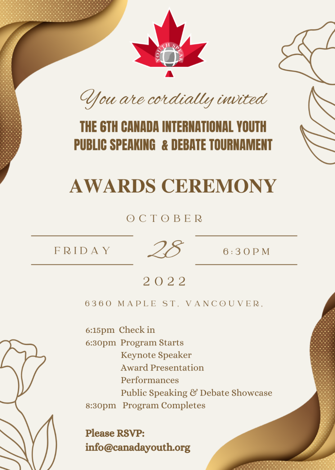 本次赛事除了为每位参赛选手设置的参与奖,还有不同组别的名次奖项、以及最具潜力奖(Outstanding Potential)、鼓励奖(Honorable Mention)等。颁奖仪式将于2022年10月28日周日晚上在温哥华Magee 中学礼堂举办,加拿大乐活网全程报道!